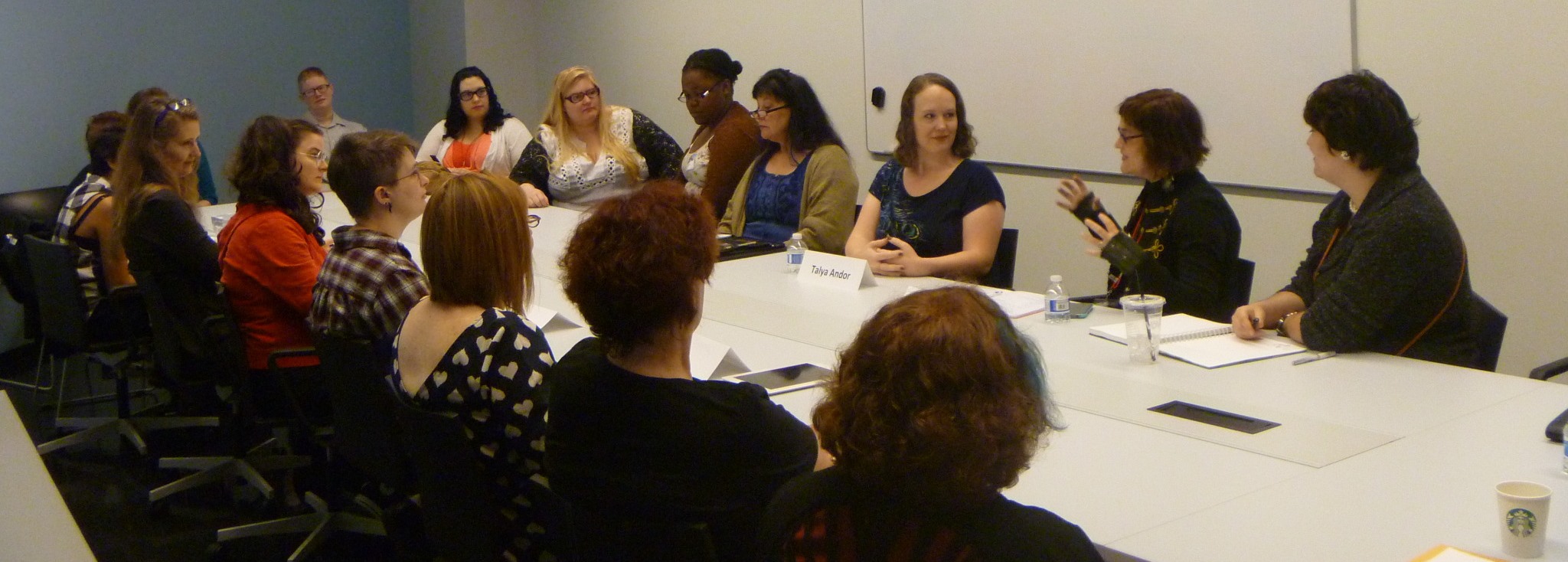 This panel discussion examined multiple perspectives on writing within the LGBTQ romance genre, including genre definitions and tropes, different subgenres, writing (or not writing) sex scenes, and other topics.