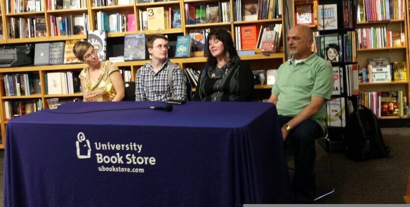 On February 13, readers celebrated love stories with Old Growth Northwest’s Gay Romance Northwest initiative as we presented a special reading event at Seattle’s University Book Store with four Washington State writers—Daisy Harris, M.J. O’Shea, Rick R. Reed, and Sheri Lewis Wohl. Whether they explored the darker edges of love (with vampires), heat up the night (with firefighters), or set the stage for new romance (with pop singers), each author shined a spotlight on LGBT relationships and the universality of love.