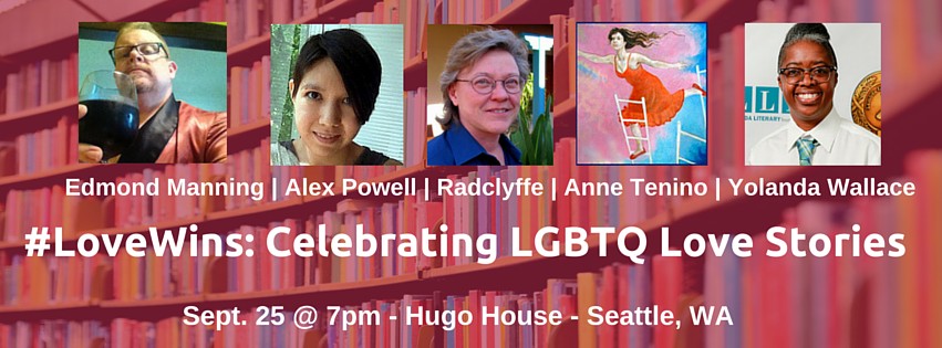 2015 is a monumental year for love stories in all its rainbow colors! Come join us for #LoveWins, as we present a special reading event at Hugo House with five amazing authors—Edmond Manning, Alex Powell, Radclyffe, Anne Tenino, and Yolanda Wallace. From contemporary romances to sci-fi space romps to college coming out stories, each writer shines a spotlight on LGBTQ lives, loves and relationships, and promotes the theme that there’s Happily Ever After for everyone, and Love really does win in the end.\